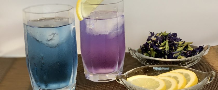 バタフライピーというお花からこのブルーの色が出ていて、人口の着色は一切ありません!